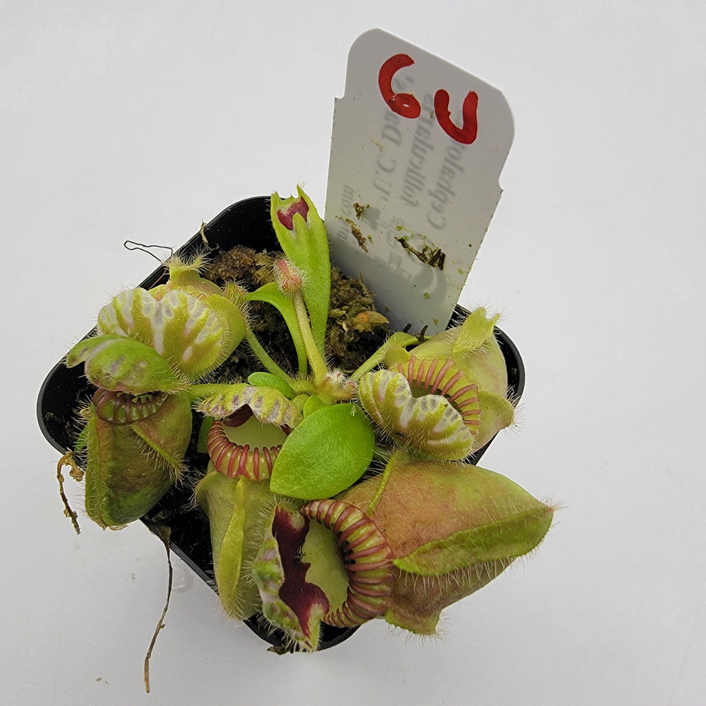 Cephalotus follicularis "UC Davis" is an pitcher plant native to Australia. These Cephalotus are about 2-3 years old and have been growing in our greenhouse under a humidity dome, please provide humidity when you receive them to avoid plant dehydration.